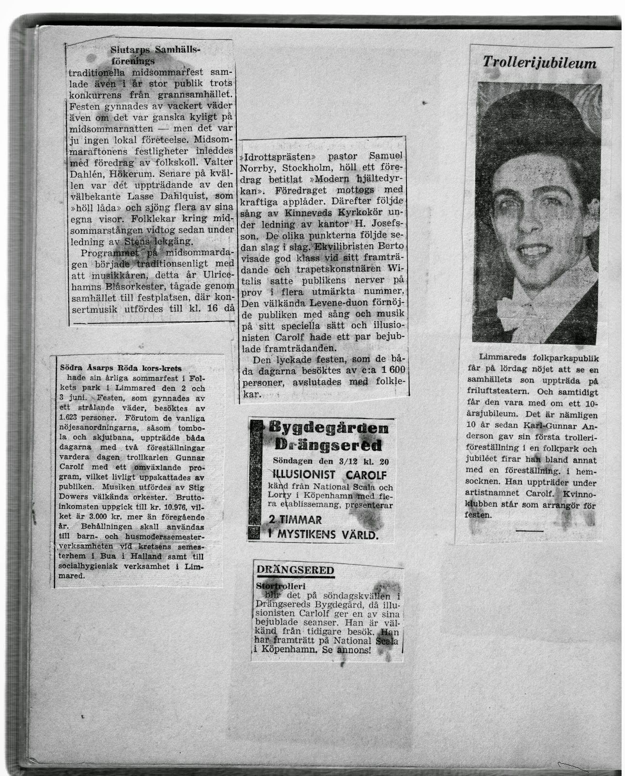 De första sidorna i klippalbumen är i kronologisk ordning. De följande sidorna är exempel från hans långa karriär
