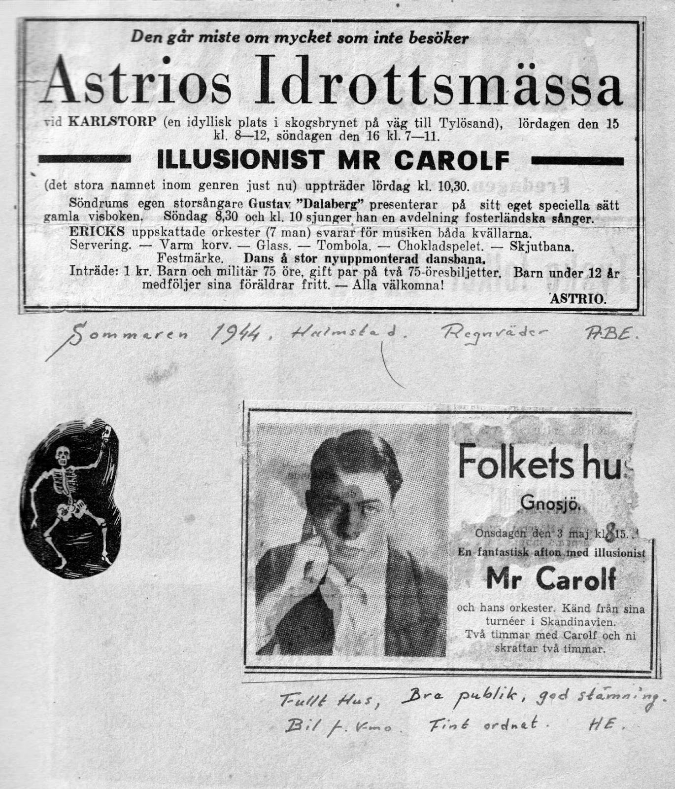 Här är fyra sidor från första albumet daterat 1944. Längre ner kommer du åt de andra två albumen.