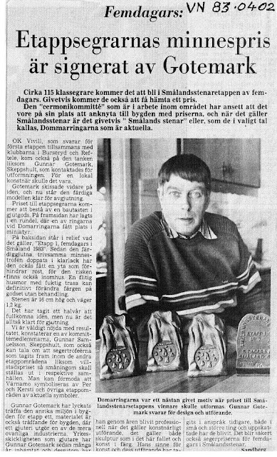 Gunnar Gotemark har även varit med och tagit fram olika sorters plaketter som t ex till Nordinskolans klassiker och Smålandsstenaretappen av femdagars 1983.
