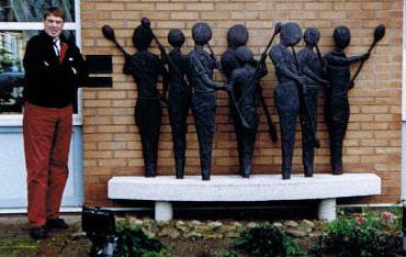 Fotot är taget vid ett senare tillfälle föreställande Gunnar Gotemark och skulpturen i Limmared.